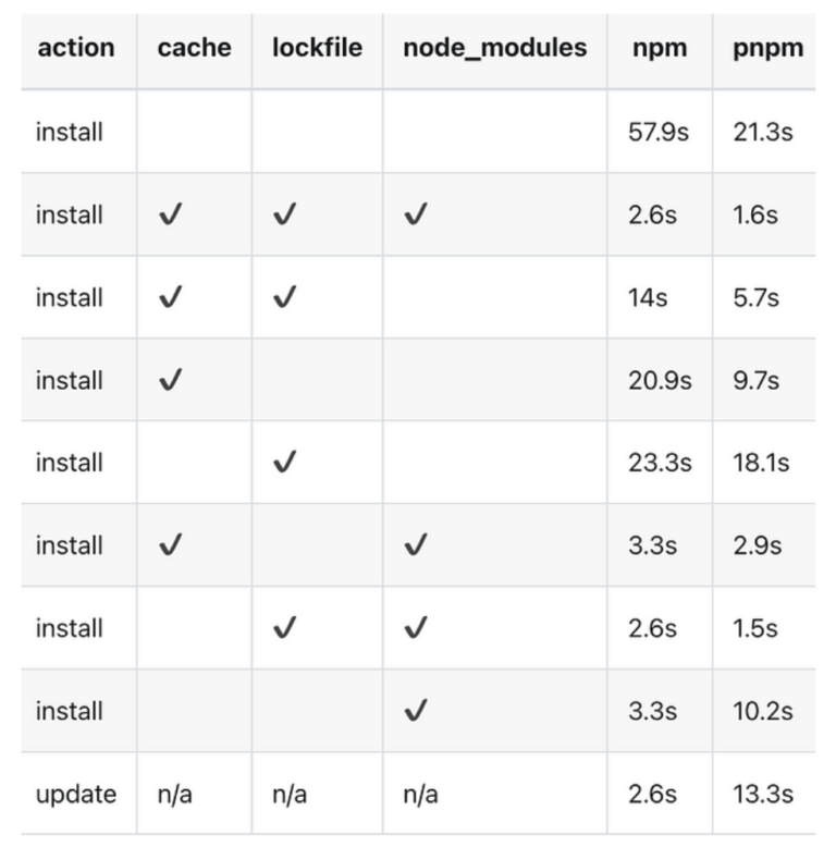 Let’s look at the benchmark information, which compares PNPM and NPM: