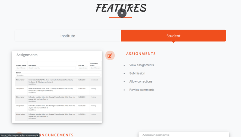 Impeccable tracker is a dance class management application is a software tool designed to help institutes to manage their classes, students, and operations more efficiently. The application typically includes features for managing student information, class schedules, attendance, and payments, as well as communication tools for instructors and students.